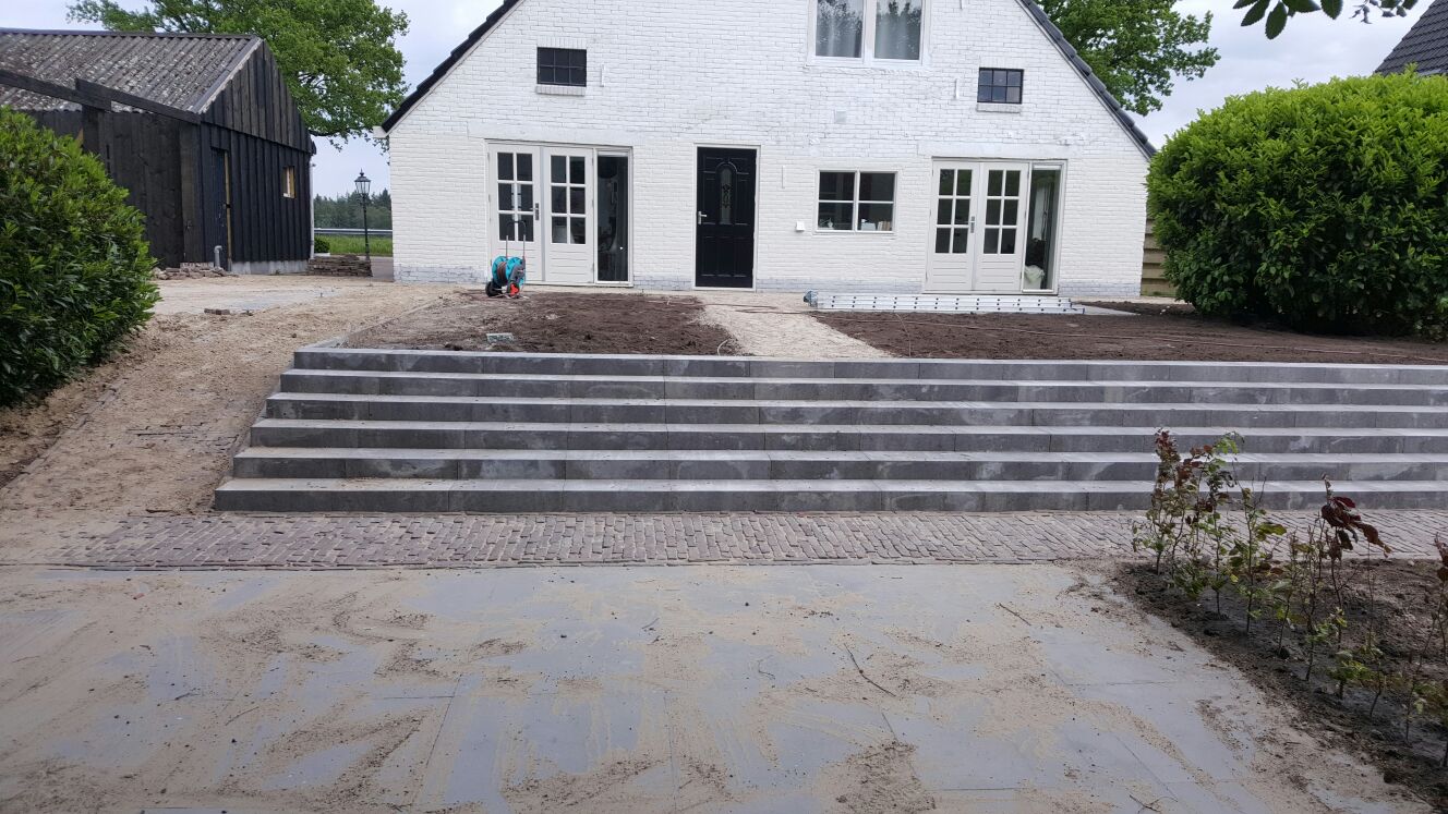 Opsluitbanden zijn er in vele maten. Van 5x15 tot 12x25 of 10x35 en leverbaar in grijs of zwart. Ze worden gebruikt voor het opsluiten van bestrating en split/grind.